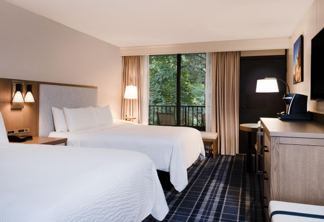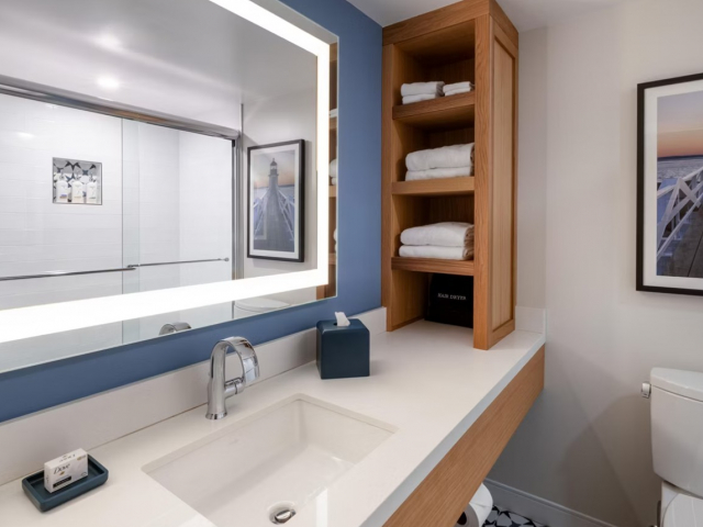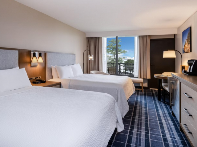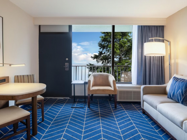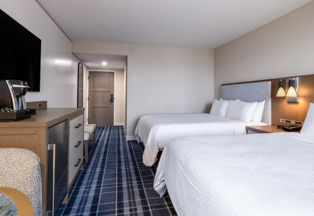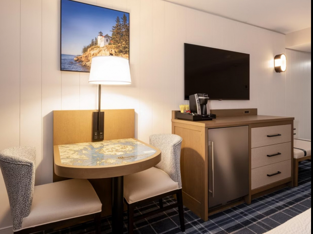 The Holiday Inn Resort Bar Harbor Acadia National Park offers multiple room types to guests. Guest rooms are spread out over a few multi-story buildings with either ocean or garden views. Most rooms have elevator access. Rooms sleep a maximum of two to four people. All rooms come with a flat-screen TV, free wireless internet, air conditioning, a coffee maker, and a mini-fridge. Many rooms offer a balcony with either ocean or garden views. Suites feature a separate bedroom along with a living area. Two suites even have a kitchen. All rooms are pet-friendly (fee applies). Accessible rooms are also available.