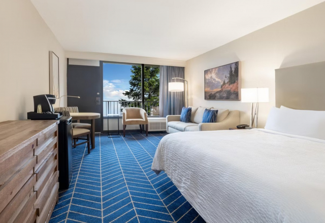 The 1 King Bed Stand and Mini-Refrigerator room sleep a maximum of two people. The room features a flat-screen television, free wireless internet, and a mini-refrigerator. The room offers a balcony to enjoy the surroundings. Please note that this room does not have ocean views.