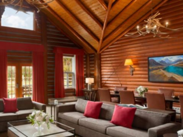This cabin is fit for royalty and has welcomed King George VI and Queen Elizabeth in 1939 as well as Queen Elizabeth II and Prince Philip in 2005. This luxurious cabin has six bedrooms, four rooms with one king, and two rooms with two double beds, plus six full ensuite bathrooms. The elegantly appointed cabin is more like a luxury home and comes with a full kitchen, two rock fireplaces.