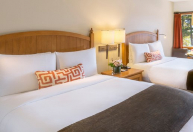 These Deluxe Main Lodge rooms feature one queen bed, a separate sitting area with a sofa sleeper, and a newly renovated bathroom. Great for small families or couples that just need a little extra room.