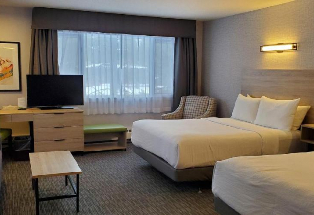 The Lodge Room with Two Queens has been recently renovated and is located in the Main Lodge on the first or second floor with no elevator access and interior access to the rooms. The rooms consist of flat-screen television with satellite, wireless internet, microwave, mini-refrigerator, tea & coffee maker, private bathroom, and iron & ironing board. The room sleeps a maximum of four people.