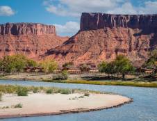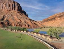 Situated among Red Rock cliffs and the Colorado River's best whitewater rapids is the award-winning Red Cliffs Lodge Moab. The hotel is just a 30-minute drive to Arches and an hour's drive to Canyonlands, making it an ideal base camp for those wanting to explore Moab. The lodge has comfortable accommodations and guests are pampered with a list of amenities that you would expect from a 3-star resort.