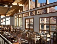 The on-site, terraced dining room, called the Cowboy Grill, serves up a western spread with a side of stunning views of the Colorado River. The full-service restaurant features individual dining, an all-you-can-eat hot breakfast buffet, Sunday brunch, and picnic box lunches for a day out in the park. The lodge is also home to a museum and winery. The resort maintains the Moab Movie Museum, which tells the rich history of the numerous Hollywood films that were made in the area using the classic, western landscape as the backdrop. In addition, the lodge houses the largest winery in Utah, the Castle Creek Winery, which offers seasonal daily wine tastings. The facility also has an exercise room, pool and hot tub, tennis courts, and seasonal horseback riding.