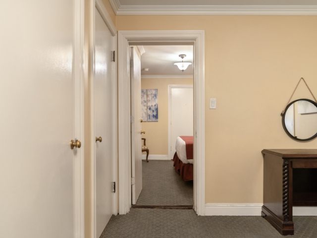 The Historic Two Room Suite is a large two-room suite with additional space at the Sonora Inn. The suite features one king bed in one room and one queen bed in the other room and sleeps a maximum of four people. The suite includes such amenities as a seating area, cable television, wireless internet, refrigerator, microwave, and air conditioning. Free full continental breakfast is offered each day for guests.
