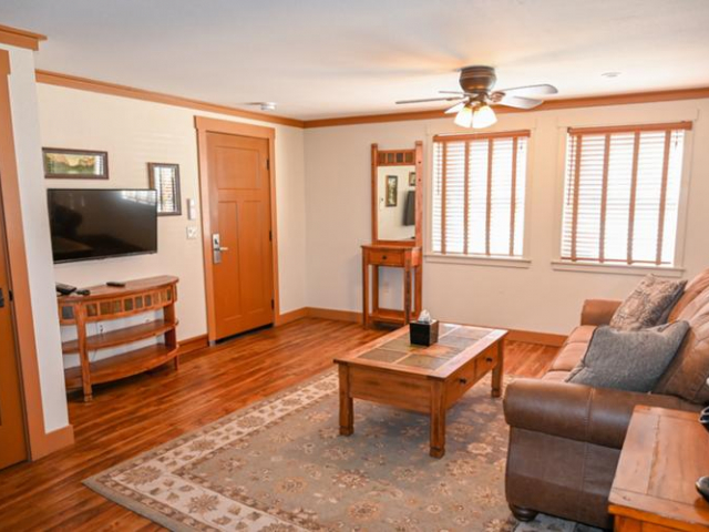 The interior is fully equipped with a comprehensive selection of standard amenities, and the updated bathroom includes a sleek walk-in shower. Because of its central position, this accommodation is situated only a brief stroll from the lobby and the main lodge facilities.