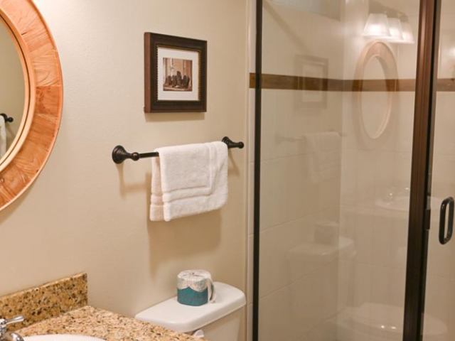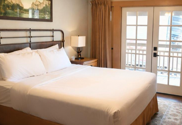 The suite is fully stocked with a complete selection of standard amenities and includes a contemporary bathroom with a walk-in shower. Thanks to its prime location, you are positioned only moments away from the lobby and the central lodge facilities.