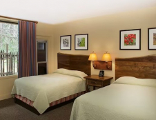 Traditional Rooms at Yosemite Valley Lodge feature a variety of bedding options, select from either two double beds, one queen bed, one king bed, or one queen bed & one bunk bed (single bed over a double bed). The rooms also offer a private bathroom and a table with chairs. Each room has been remodeled with energy-saving lighting, Energy Star televisions, and recycled materials for the flooring. The lodge does not provide air conditioning in the rooms, ceiling fans are provided in each room. Only the one-queen Traditional Rooms are ADA-available. Please note in the comments if you prefer one bed.