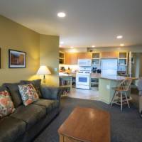 This duplex unit includes 3 bedroom and 3 bathrooms on the lower level, accommodating up to 8 guests. This unit provides a full kitchen, propane BBQ, and gas fireplace. One bedroom provides 1 Queen bed with a private en suite bathroom. The second bedroom has 1 Queen with a ¾ bathroom (shower, no tub), and the third includes 2 Twins with a third bathroom. The living room area will have a sofa sleeper and satellite TV, as well as WiFi access. There will also be laundry facilities on site.