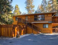 Golden Trout Retreat is a four bedroom, three bathroom log-style home that has it all. Sleeping up to 12 people comfortably, there is one king bedroom, two bedrooms with a queen in each, and the fourth bedroom with a full over full bunk bed and a pull out twin trundle bed. Each bedroom comes with their own smart TV. The fully equipped kitchen opens to the dining area. Beside the dining room, there is an outdoor covered patio with a BBQ, picnic table and a jacuzzi hot tub.