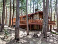 Nestled in among the trees in a great location, the “Robin's Nest” is a two-bedroom, two-bathroom home that sleeps six. Both of the bedrooms have king beds and there is a sofa sleeper in the living room. One of the bathrooms is a three-quarter bath and is attached to one of the bedrooms. The great room includes a kitchen with bar seating, a dining room table, and spacious seating in front of a rock fireplace and entertainment center. The home has a beautiful deck with a gas BBQ grill and plenty of seating to enjoy outdoor cooking or dining. This vacation home has a bronze rating.
